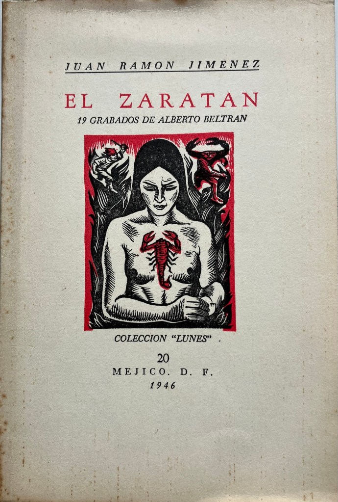 NOTA: A quien se anime a leer “El Zaratán”, conociendo la dificultad para acceder a las ediciones citadas, le recomiendo una edición de la Fundación Juan Ramón Jiménez, publicada en 1990, cuidada con esmero por un poeta al que conozco y aprecio, Juan Cobos Wilkins, sobre todo porque el extenso prólogo, escrito por Arturo del Villar, ayuda a comprender bien esta bella obra, una “figuración”, como él explica. También, pueden leer una edición, publicada en Huelva en 2017, por la editorial Niebla, que valoro positivamente, en la que se incorporan los 19 grabados de la edición de Méjico de 1946.