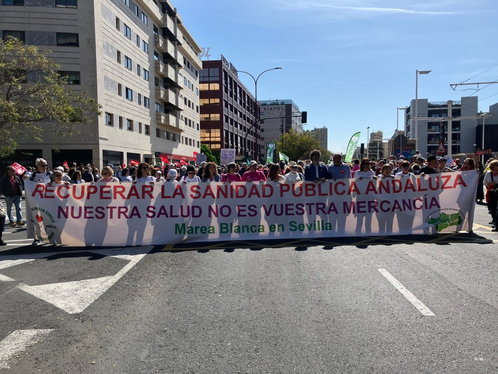 Estoy en este momento en los tramos finales de la manifestación convocada hoy por la Coordinadora de Mareas Blancas de Andalucía, en Sevilla, donde la participación es muy importante, aunque desde órganos oficiales el número de participantes parecerá irrelevante.