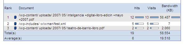 Tengo mucho interés en conocer cuántas personas se “bajan” (¿”compran” por valor y no por precio?) mi libro sobre Inteligencia Digital, día a día, con libertad de acceso a él respetando reglas de juego en los parámetros que fija la licencia Creative Commons. En este caso, han sido 13 personas. Sé que ha sido así por el ancho de banda consumido y por la acción que se complementa con otras estadísticas de la herramienta que utilizo al analizar, en general, datos por archivos.
