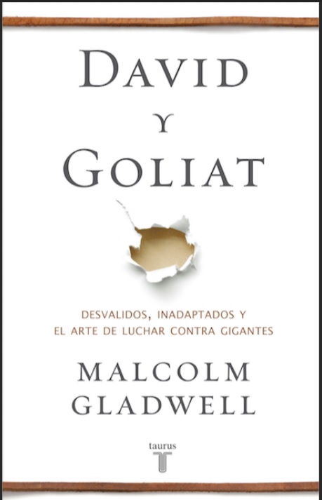 Esa mano tan magníficamente esculpida por Miguel Ángel simboliza entre otras muchas posibilidades, las dos razones que explica Gladwell como hilo conductor de su obra: “A través de estas historias, quiero analizar dos ideas. La primera es que mucho de lo que consideramos más valioso en nuestro mundo proviene de esta clase de enfrentamientos desiguales, porque disputar cuando se tiene todo en contra genera grandeza y belleza. Y la segunda idea es que, una y otra vez, malinterpretamos esta clase de conflictos. Hacemos lecturas erróneas. Los comprendemos mal. Los gigantes no son como pensamos. Las mismas características que parecen dotarles de fuerza constituyen muchas veces sus puntos débiles. Y el hecho de ser el que en principio lleva las de perder puede transformar a la gente de modos que a menudo nos cuesta apreciar: puede abrir puertas; crear oportunidades; educar e ilustrar; y hacer factible lo que de otra manera sería impensable. Nos hacen falta mejores pautas para luchar contra gigantes, y no hay mejor lugar para comenzar este viaje que el épico duelo entre David y Goliat, hace tres mil años, en el valle de Ela”.