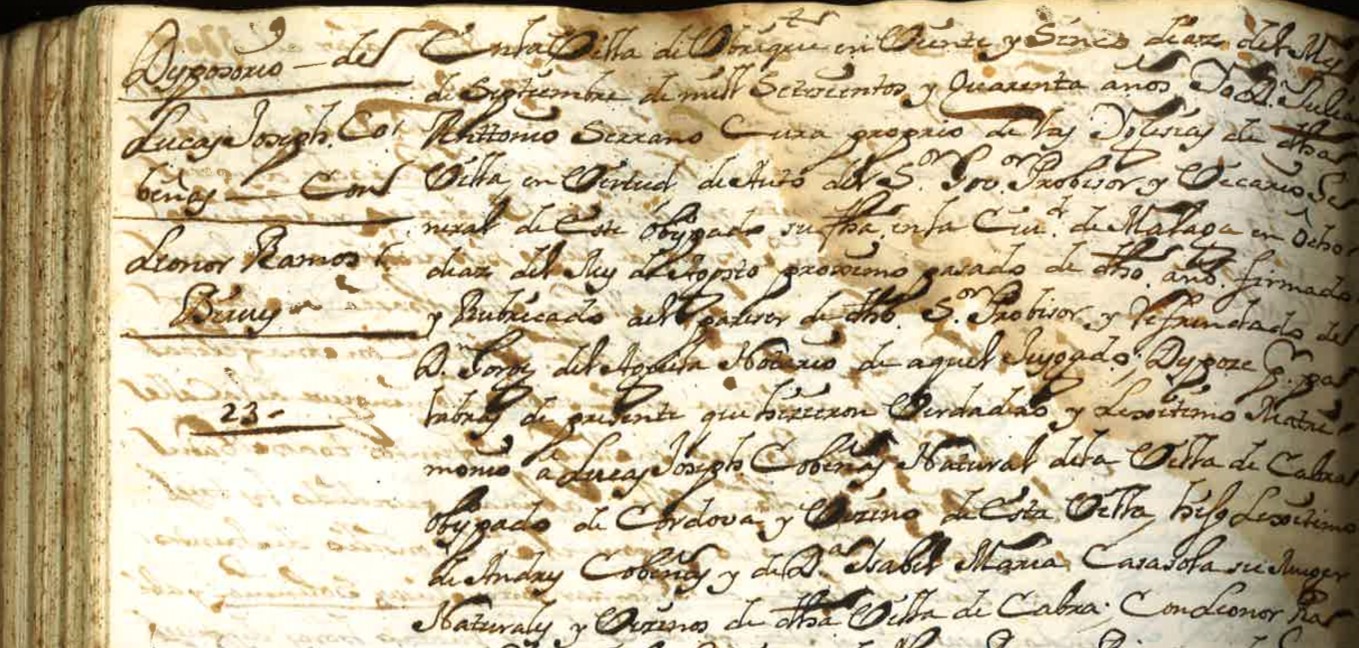 Tengo que reconocer que me han impactado esas palabras de Caballero Bonald y me llama la atención que como una premonición más de mi larga vida, tengo a este autor jerezano muy presente en mi devenir actual de persona mayor, después de haber leído recientemente su primera novela, Dos días de setiembre, por una razón curiosa: indagar sobre un personaje de la misma, de nombre Julián Cobeña, en un momento en el que estoy trabajando sobre la genealogía de mi primer apellido. La tarjeta de presentación de este personaje no aventuraba nada bueno en la lectura de esta novela: “Julián Cobeña era una especie de lagarto que había hecho de todo, hasta de alcahuete y tapapocilgas de Don Gabriel Varela, vinatero y traficante, a cuyo servicio estaba desde hacía veinte años”. Cuando llegué a las últimas referencias de Julián Cobeña en la novela, comprobé que su existencia en la ficción me había creado bastante desasosiego, hasta tal punto que pensé en su momento dirigirme al autor para preguntarle quién estaba detrás de Julián, sabiendo como sé hoy que las raíces de este apellido se remontan a lo largo de casi cuatro siglos a su lugar de nacimiento, Jerez de la Frontera, y sobre todo, a Ubrique, lugar donde sorprendentemente llegó un día un tal Lucas José Cobeñas Casasola, natural de Cabra, descendiente de una familia de tejeros que se instalaron en la subbética cordobesa en el siglo XVI para solucionar un grave problema que había en las casas de esa población, como en otros muchos lugares: sustituir las cubiertas de paja de las casas por tejas, estableciéndose definitivamente en Ubrique para crear un linaje que llega hasta nuestros días en mi familia. He podido obtener gracias a mi tiempo libre el acta de desposorio [sic] de Lucas José Cobeñas Casasola, natural de Cabra (Córdoba) con Leonor Ramos Birués, natural de Ubrique (Cádiz), celebrado el 25 de setiembre de 1740 en Ubrique, siendo la primera vez que he podido constatar la procedencia cordobesa de nuestro linaje.