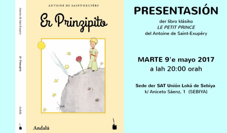 Recuerdo perfectamente el debate que suscitó en las fredes sociales la publicación del cuento El Principito, de Antoine de Saint-Exupéry, que presentó en Sevilla el Sindicato Andaluz de trabajadores (SAT), el 9 de mayo de 2017. Aquello fue una revolución mediática por su origen “sindical” que conmovía los cimientos de la “toda Sevilla” y por la novedad de comenzar a traducirse al “andaluz” un cuento de tan larga historia: “Os invitamos a la presentación del libro clásico de «Er Prinzipito» en su traducción al andaluz por el antropólogo Huan Porrah. Entendiendo que será una oportunidad única para poder disfrutar de la filosofía que emana el libro a través de nuestro idioma andaluz. Ô imbitamô a la presentasión der libro klásiko de «Er Prinzipito» en su tradusión a l’andalú po e l’antropólogo Huan Porrah. Arremetiendo ke será una oportuniá unika pa poé difrutá de la filosofía ke mana er libro a trabé de nuettro idioma andalú”.
