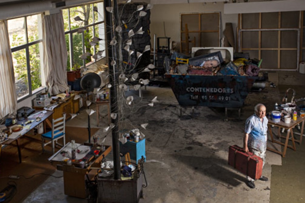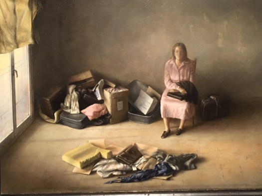 Contemplo ahora una imagen de Toral en su estudio de Toledo, presidido por amplios ventanales discretos que aportan luz a su obra, caminando entre bocetos y sus sempiternas maletas, llevando una como para dar ejemplo de su eterno viaje hacia alguna parte. Figuran siempre en sus cuadros y esculturas recordándonos también la realidad de la soledad sonora que sienten muchas personas, básicamente mujeres y emigrantes, en sus diferentes viajes de vida. Principalmente, en el citado Museo, obras dedicadas a la mujer, siempre sola: “Trato mucho también el tema de la mujer. Mujeres en interiores de hoteles de no mucho tronío, frágiles, expuestas, con una sensualidad que las humaniza, solitarias… Interpreto esa soledad que existe, la sensación de tránsito. Me gustan las habitaciones de los hoteles, espacios de tránsito donde aparecen las maletas, las camas, las sábanas”.