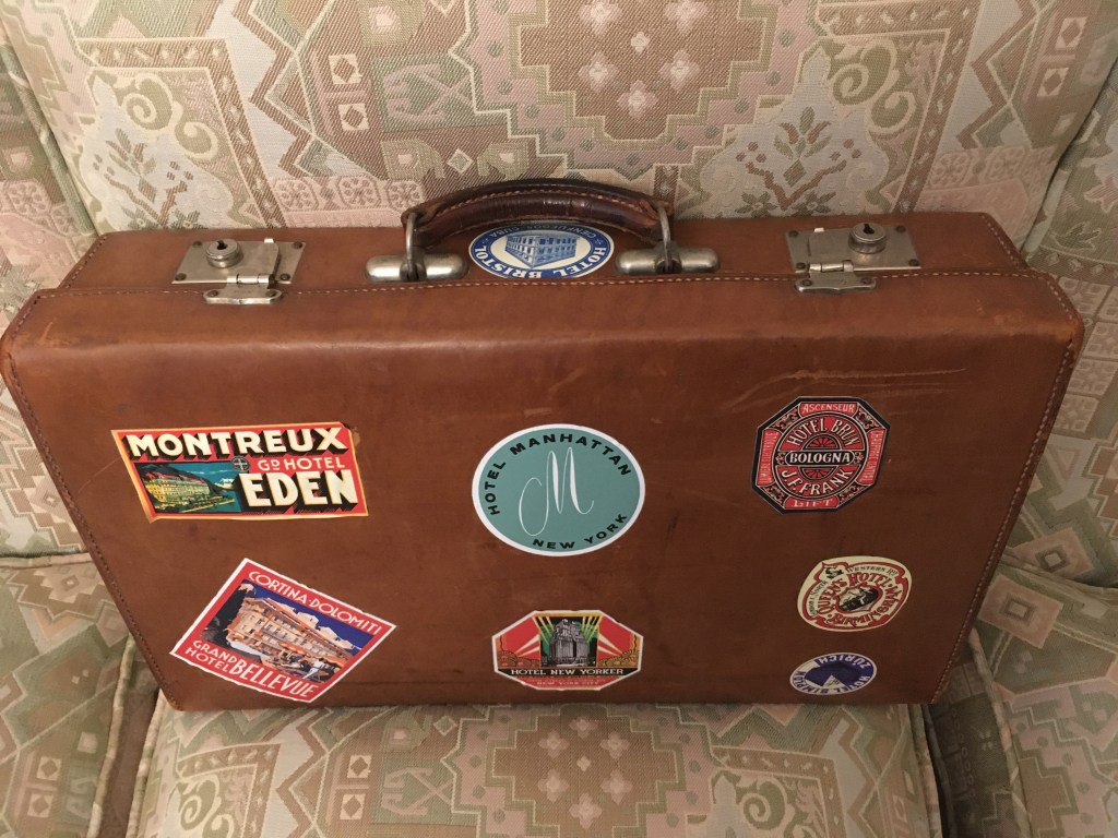 En mi tránsito particular, también hay una pequeña maleta que finalmente deshice en ese mismo año, 2017, después de haber viajado siempre conmigo, acompañándome como testigo muda en todas las mudanzas que he hecho incluso en tiempo de turbación. Hoy he vuelto a contemplarla a la luz de una ventana discreta, ahora decorada con sellos de hoteles ficticios en este viaje tan particular. En ella había recuerdos de mi infancia, cuadernos, lápices, dibujos, chapas con fotografías de ciclistas que me acompañaron a dar una imaginaria Vuelta a España en las aceras de Madrid, en el Retiro, construcciones modeladas a mano, notas del Cuadro de Honor, cartas, fotografías familiares, postales y recuerdos varios que guardo ahora en el corazón y en mis cajas de sueños 1 y 2.