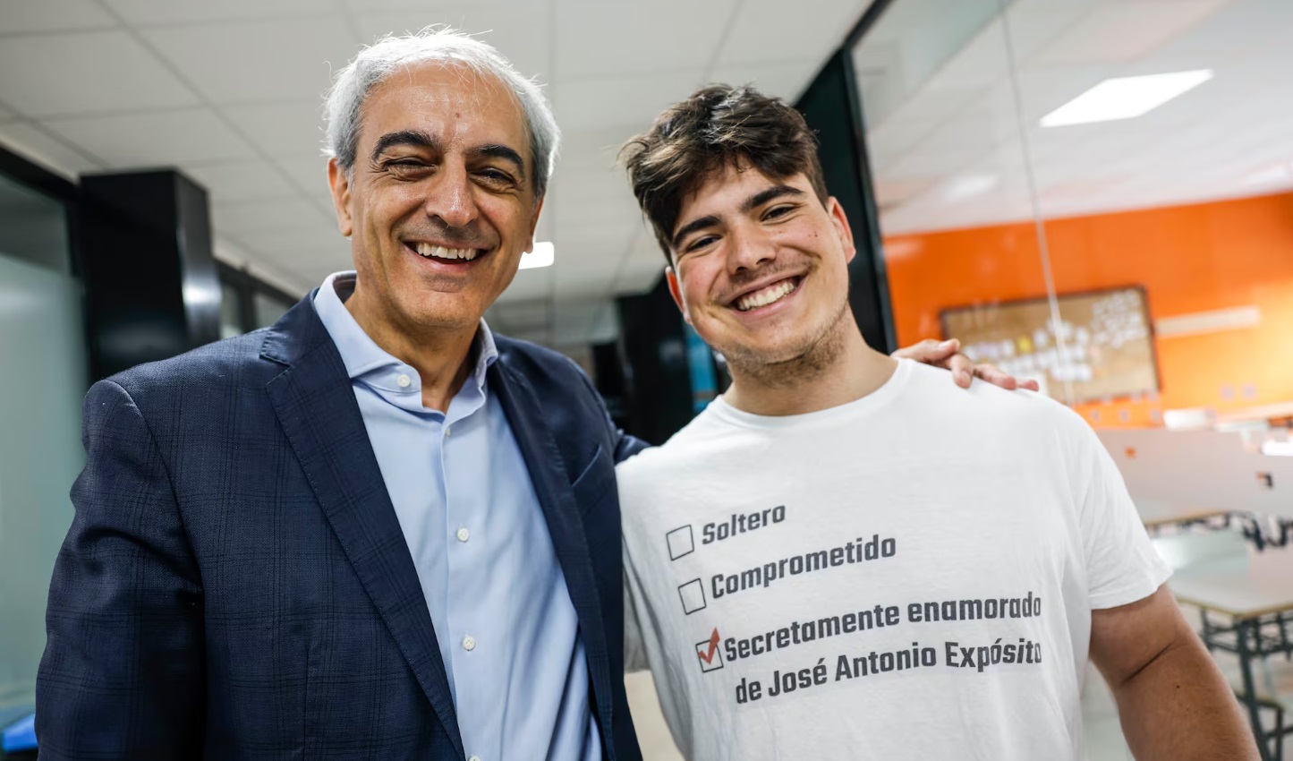 En mitad del recorrido por el instituto, un grupo de cuatro chavales, acompañados de la profesora, se acerca corriendo al director para enseñarle la camiseta que lleva uno de ellos. En letras negras se lee: “Soltero, comprometido, secretamente enamorado de José Antonio Expósito”. La última opción es la que está marcada con un tick rojo. Todos bromean y se hacen un par de fotos. Todavía no saben que su director deja el centro.
