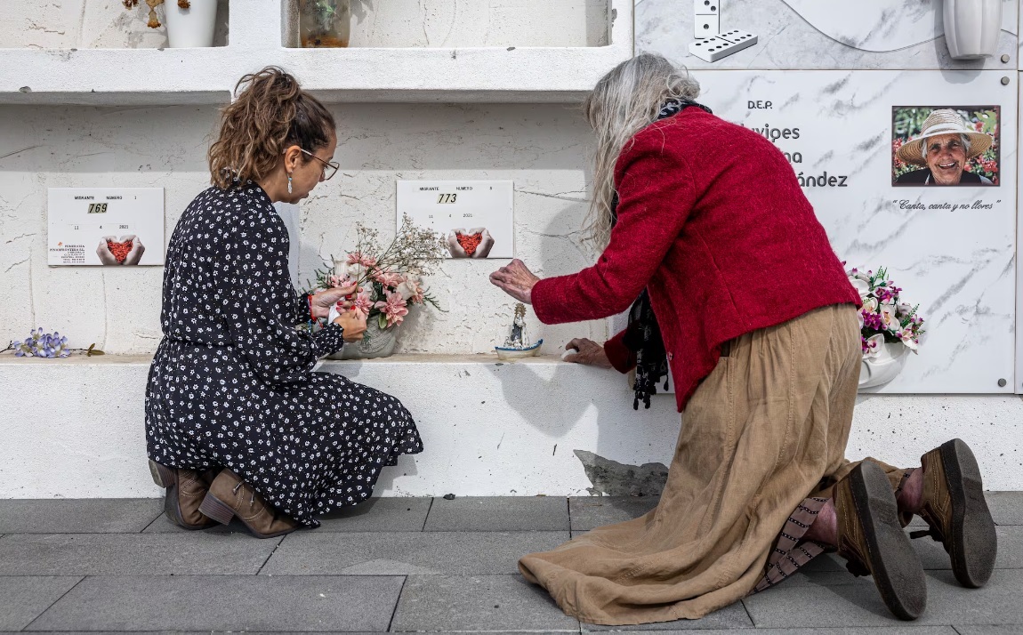 Recuerdo una fotografía publicada por el diario El País, en el mes de marzo de este año, que he elegido hoy para presidir estas palabras, que sobrecogía viéndola, pero aún más al leer su pie de foto: «Desde hace unos meses, un grupo de mujeres peregrina por los cementerios de la isla para que los nichos donde yacen los inmigrantes que murieron no caigan en el olvido. Asisten a los entierros y embellecen las lápidas. A veces consiguen incluso darles nombre. “¿Cuántos aviones se llenarían con los que se han muerto en esta ruta?”, cuestiona Joke Volte, una holandesa de 70 años de melena canosa, que acompaña a Marichal. “Cuando se cae un avión, montamos monumentos y aniversarios, pero aquí solo hay silencio”.