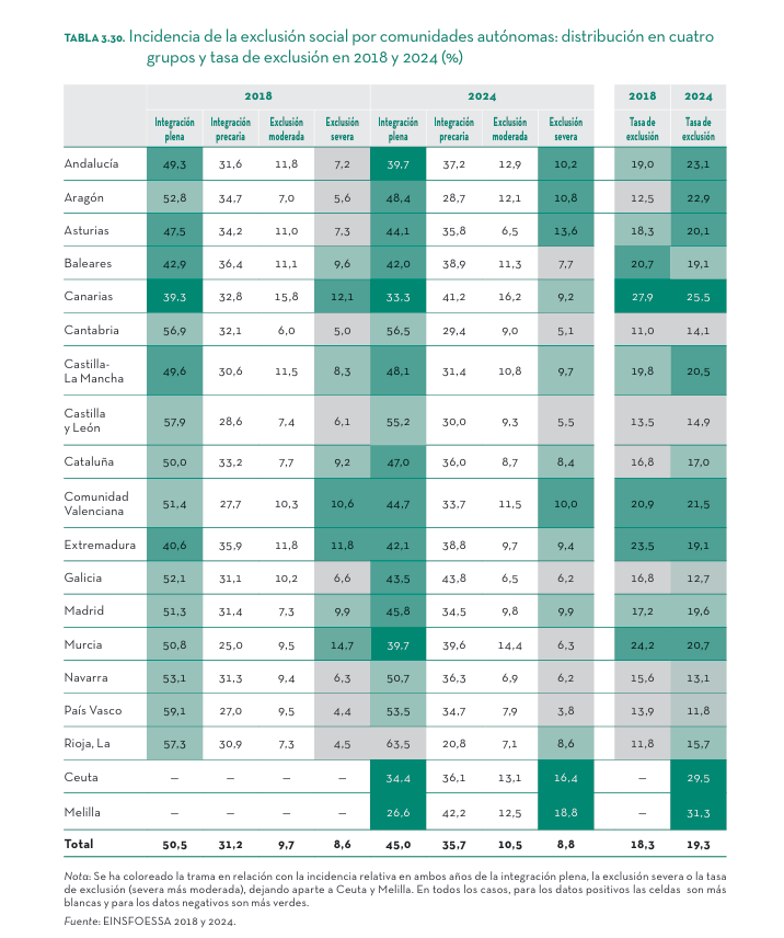 Adentrarse en el entramado objetivo de los datos expuestos, es un ejercicio obligado para poder emitir juicios bien informados sobre la exclusión social y desarrollo en nuestro país: «No se trata de un ejercicio académico neutro, sino de un esfuerzo intelectual comprometido con la construcción de una sociedad más justa, equitativa y sostenible. Las ciencias sociales que aquí se despliegan están al servicio de la acción, orientadas a desentrañar los mecanismos que perpetúan la desigualdad y la exclusión, pero también a identificar las grietas por las que puede emerger la transformación social». A lo largo de los seis capítulos del informe que, como se dice en la introducción, «no son compartimentos estancos», se abordan cuestiones relevantes para abordar datos objetivos de lo que está pasando y estamos viendo, así como planteamientos urgentes y necesarios para la transformación de los mismos que satisfagan las necesidades de la ciudadanía.