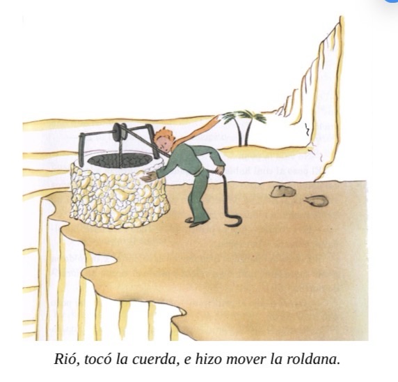 Nos aproximamos a los últimos capítulos, hoy el XXV y XXVI. En el primero, leo la travesía del desierto que permite al principito y al aviador, llegar a un pozo que parecía de aldea no del Sáhara, al disponer de roldana, balde y la cuerda… El principito “rió, tocó la cuerda, e hizo mover la roldana. Y la roldana gimió como gime una vieja veleta cuando el viento ha dormido mucho”.