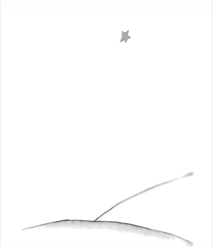 “Éste es, para mí, el más bello y más triste paisaje del mundo.Es el mismo paisaje de la página precedente, pero lo he dibujado una vez más para mostrároslo bien. Aquí fue donde el principito apareció en la Tierra, y luego desapareció. Mirad atentamente este paisaje a fin de estar seguros de que habréis de reconocerlo, si viajáis un día por el África, en el desierto. Y si llegáis a pasar por allí, os suplico: no os apresuréis; esperad un momento, exactamente debajo de la estrella. Si entonces un niño llega hacia vosotros, si ríe, si tiene cabellos de oro, si no responde cuando se le interroga, adivinaréis quién es. ¡Sed amables entonces! No me dejéis tan triste. Escribidme en seguida, decidme que el principito ha vuelto…”.