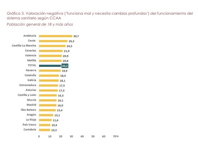 He sintetizado en la medida de lo posible los resultados obtenidos en el Informe, aunque al ser una selección personal, obliga a conocer íntegramente el documento en toda su extensión, para no obviar otros indicadores de suma importancia, como puede ser las listas de espera o la realidad de la historia de salud digital en el país, donde Andalucía ha sido pionera durante muchos años, siendo una realidad actual que ya no es así: