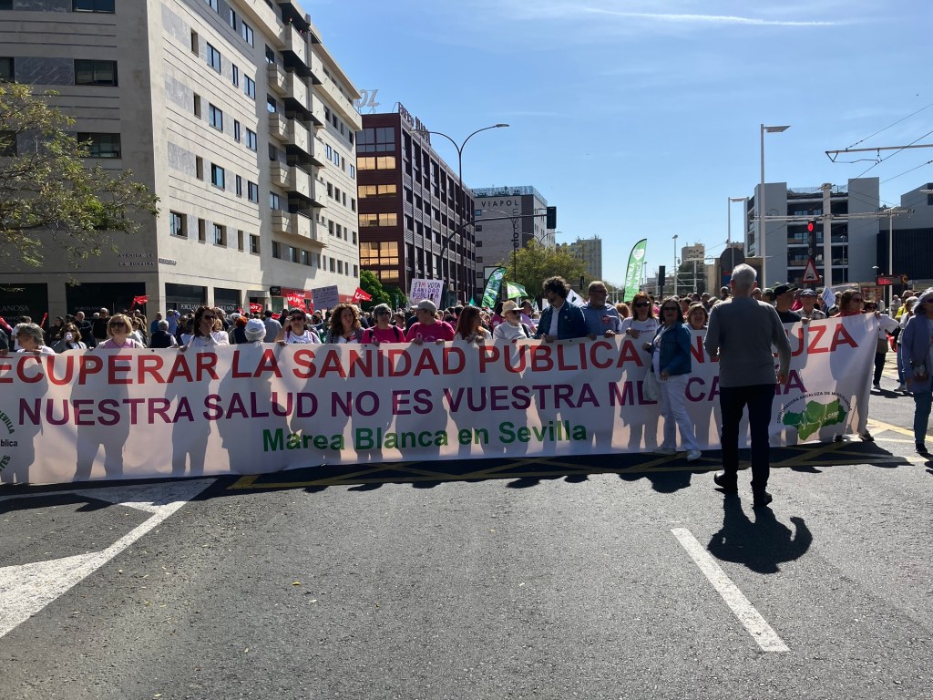 Estoy en este momento en los tramos finales de la manifestación convocada hoy por la Coordinadora de Mareas Blancas de Andalucía, en Sevilla, donde la participación es muy importante, aunque desde órganos oficiales el número de participantes parecerá irrelevante.