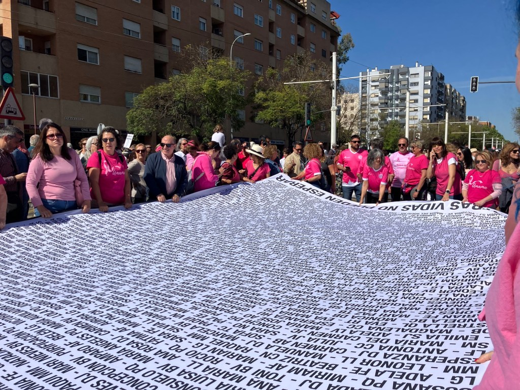 AMAMA [Asociación de mujeres con cáncer de mama], en la cabecera de la manifestación en defensa de la sanidad pública