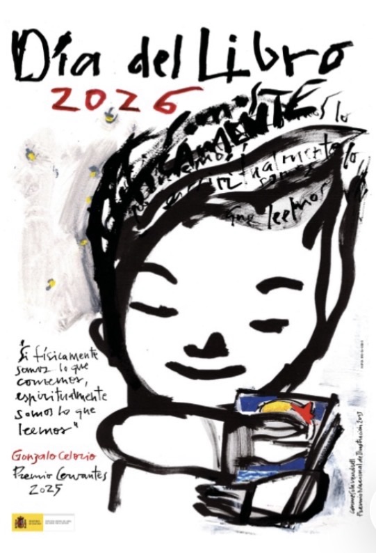 El cartel oficial de este año, ha sido diseñado por Carme Solé, Premio Nacional de Ilustración 2013: “La obra se ha inspirado en una cita del actual Premio de Literatura en Lengua Castellana ‘Miguel de Cervantes’ 2025, Gonzalo Celorio: “Si físicamente somos lo que comemos, espiritualmente somos lo que leemos”. Esta cita me ha recordado otra de Federico García Lorca, recogida en su sobrecogedora Alocución al pueblo de Fuente Vaqueros (septiembre, 1931), cuando dijo […] no olvidéis este precioso refrán que escribió un crítico francés del siglo XIX: «Dime qué lees y te diré quien eres». Se refería a François Mauriac. Y también recuerdo otra, en ese acto, no menos relevante por su contenido anímico: “Yo tengo mucha más lástima de un hombre que quiere saber y no puede, que de un hambriento. Porque un hambriento puede calmar su hambre fácilmente con un pedazo de pan o con unas frutas, pero un hombre que tiene ansia de saber y no tiene medios, sufre una terrible agonía porque son libros, libros, muchos libros los que necesita y ¿dónde están esos libros? ¡Libros! ¡Libros! Hace aquí una palabra mágica que equivale a decir: «amor, amor», y que debían los pueblos pedir como piden pan o como anhelan la lluvia para sus sementeras”.
